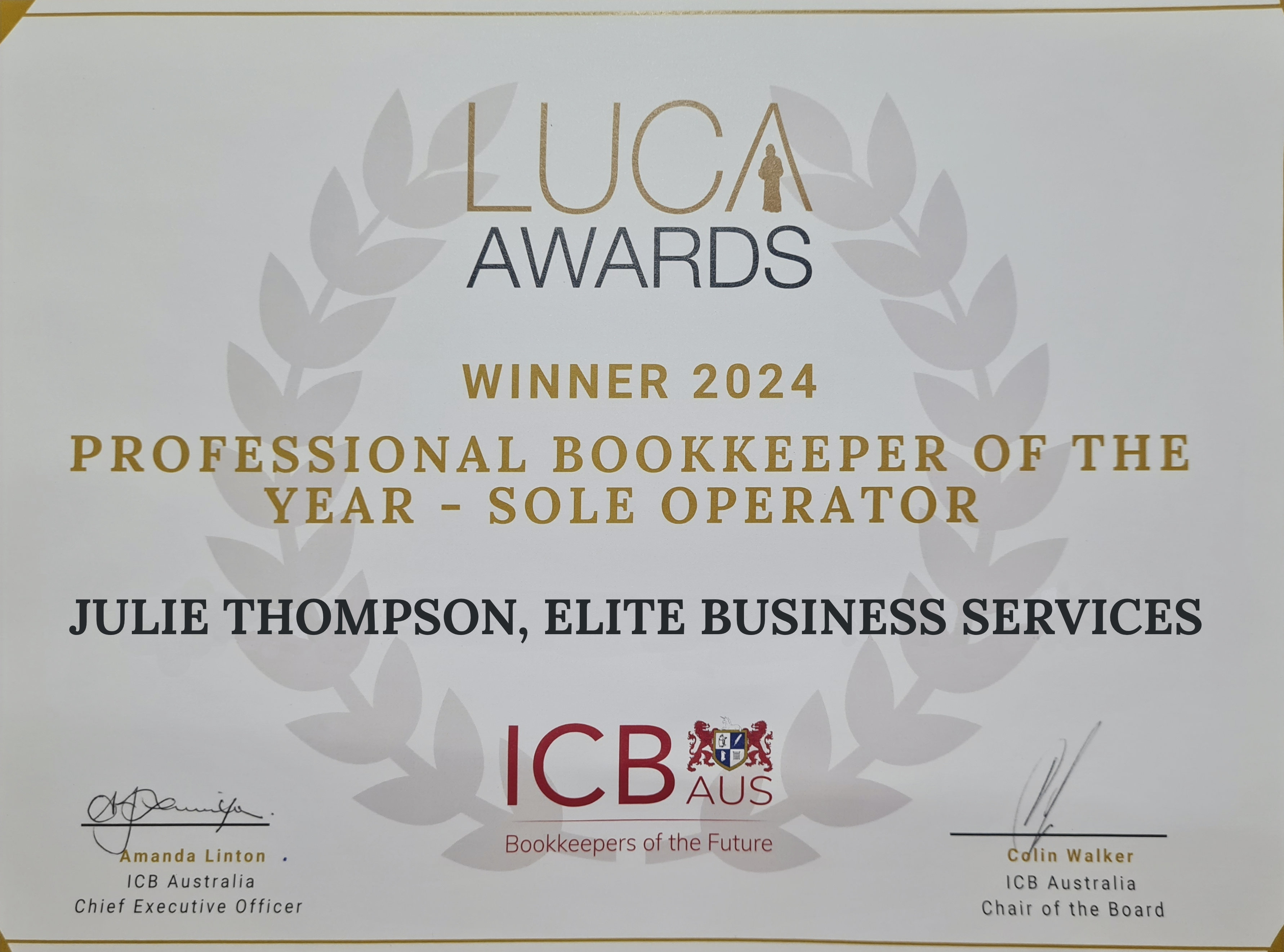 Julie has made history by becoming the inaugural winner of the Institute of Certified Bookkeepers (ICB) Awards in Australia for 2024. This prestigious award recognizes outstanding achievement and dedication in the bookkeeping profession. Julie's win is a testament to her hard work, expertise, and commitment to excellence.